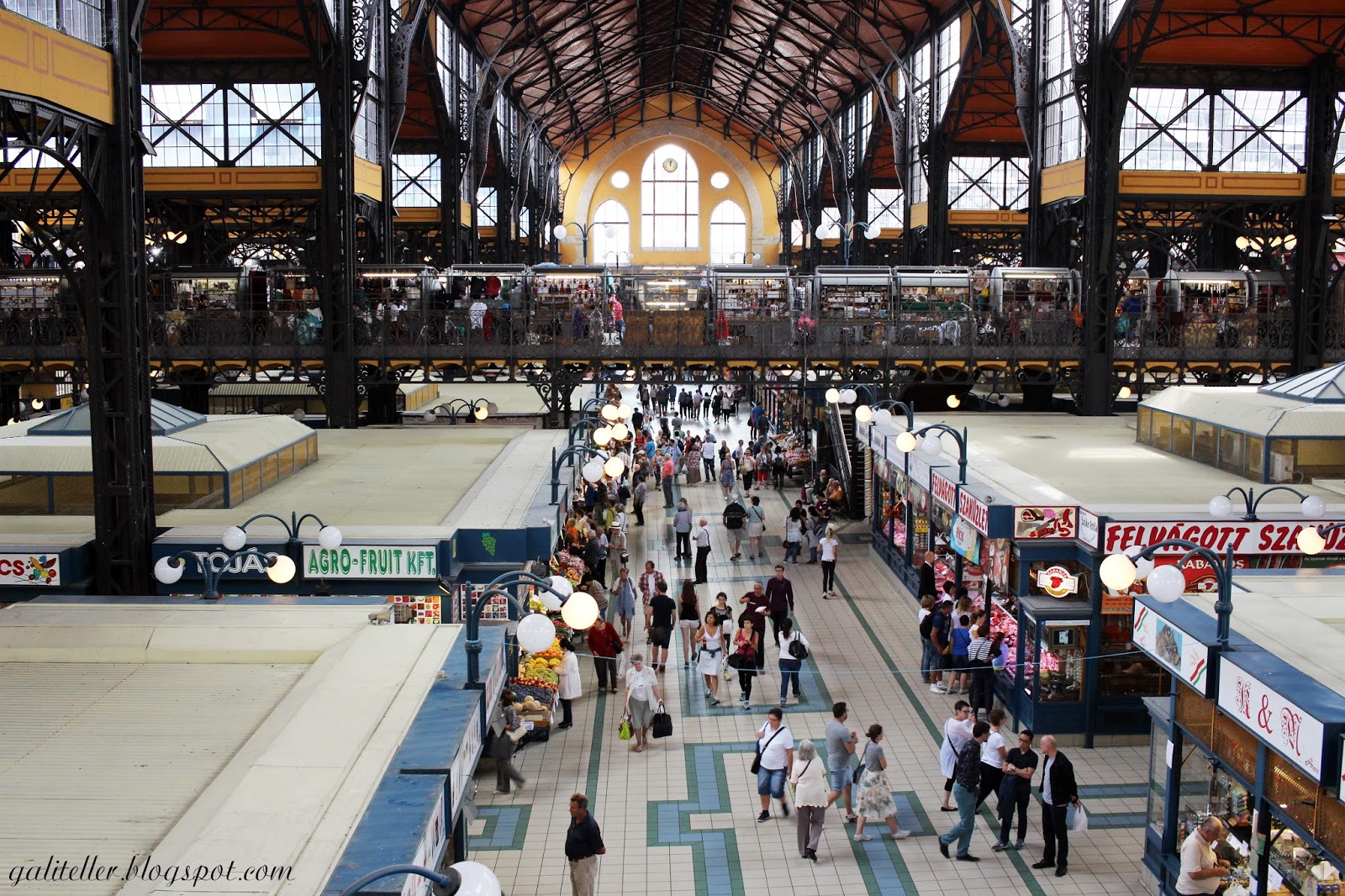 Вот так выглядит рынок изнутри) В нем два этажа...или три, но мы были только на первом и втором. На первом в основном можно купить продукты, то есть колбасы, сыры, фрукты и овощи. А второй этаж богат на разные сувениры, есть немного магазинов с одеждой и немалая часть отдана фастфуду.